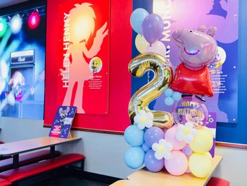 Create your own sky-high happiness with our customizable helium balloon bouquets, always treated with high float! Starting at just $50 each for one dozen balloons, each bouquet comes with its own unique weight. Available in dozens, you can mix and match to add vibrant decor to any large space or create stunning centerpieces that steal the show! Single helium balloons are $4 a piece.
