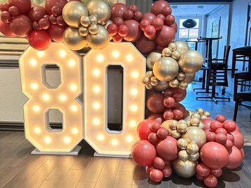 Starts at $120 for a 3ft Balloon Mosaic that is yours to keep. Up to 5ft tall. Letters and Numbers.